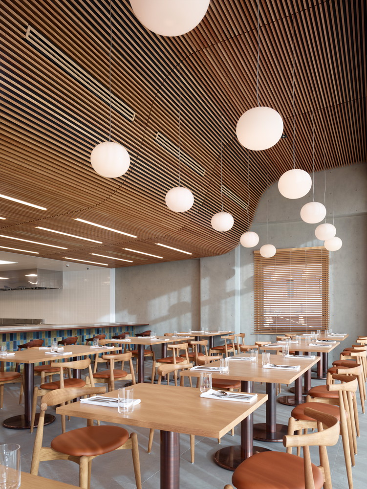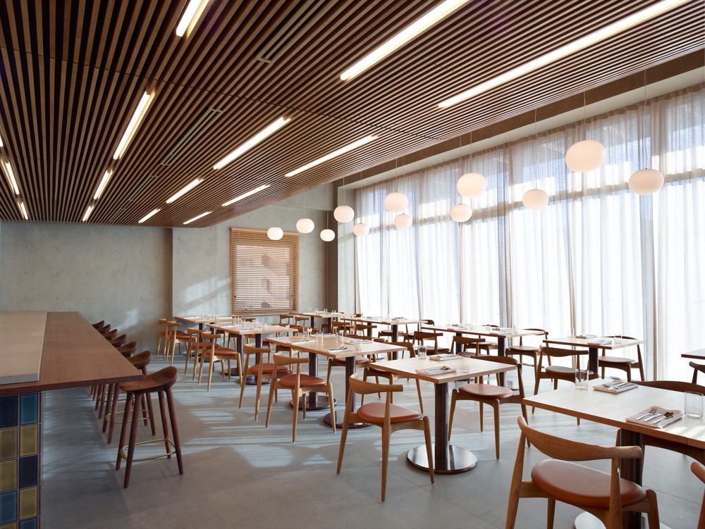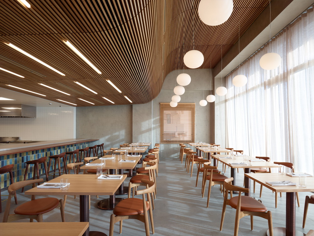 店内には、CARL HANSEN & SØNのダイニングチェアと、宮崎椅子製作所のBARスツールをレストラン・バー両方に採用。
